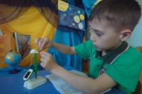 И дали в руки малышей наборы для химических опытов «Неньютоновская жидкость», «Выращиваем кристаллы», «Оптические иллюзии», а также конструкторы, работающие на солнечных батареях «Солнечный мотор» и «Солнцемобиль». Ребятишки смогли собрать и запустить с помощью солнечной энергии различные конструкции: ветряной двигатель, самолет, моторную лодку, самолет-карусель, робота и автомобиль. Конечно, под присмотром взрослых. Бурю положительных эмоций у детей вызвал не только процесс сборки конструкторов, но и осознание того, что механизмы могут работать от природной энергии солнца.