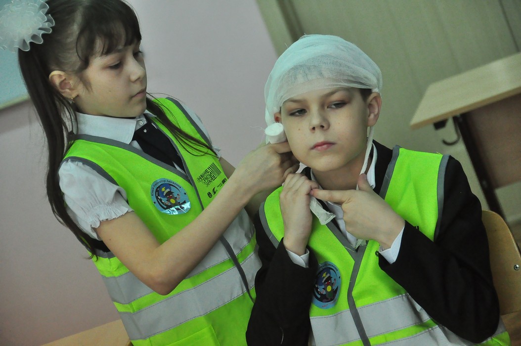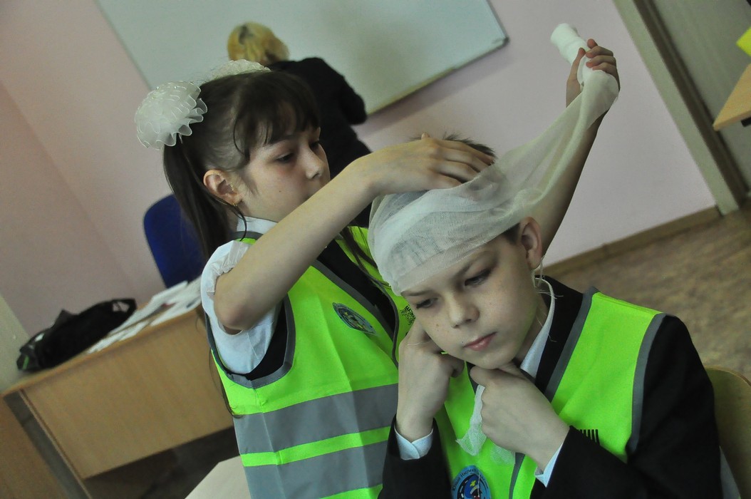 Юные инспекторы из 4 «Б» школы № 30 вместе со своим классным руководителем Марией Мясниковой готовились к соревнованиям на весенних каникулах. Вместе учились накладывать шины, вместе сдавали экзамен на знание ПДД. «Аварии у нас происходят из-за невнимательности взрослых, – рассуждает капитан команды Валерия Каяхова. – Сами мы переходим дорогу только по «зебре», где есть светофор. А если видим, что кто-то хочет перейти дорогу в неположенном месте, подойдем и остановим его».