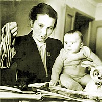…Фото 80-х годов из семейного альбома: Александра Тимофеевна показывает свои спортивные медали сынишке Андрюше.