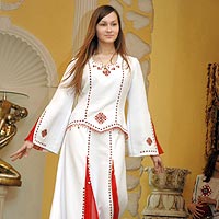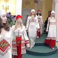 И участники конкурса тут же наглядно продемонстрировали, как виртуозно и неожиданно можно соединить в костюмах старину и современность. Фантазия и мастерство молодых модельеров поистине были безграничны. Здесь и безупречный крой, и ремесленное ткачество, и вязание крючком, и бисероплетение. Весьма удачно — тонко и гармонично — выглядели народные мотивы и в мужских рубашках, и в молодежных комплектах, и в одежде для самых маленьких. Удивила многослойностью и разнообразием исполнения коллекция «Пукане» («Куколка») учебного центра «Облик», которая показывалась впервые.