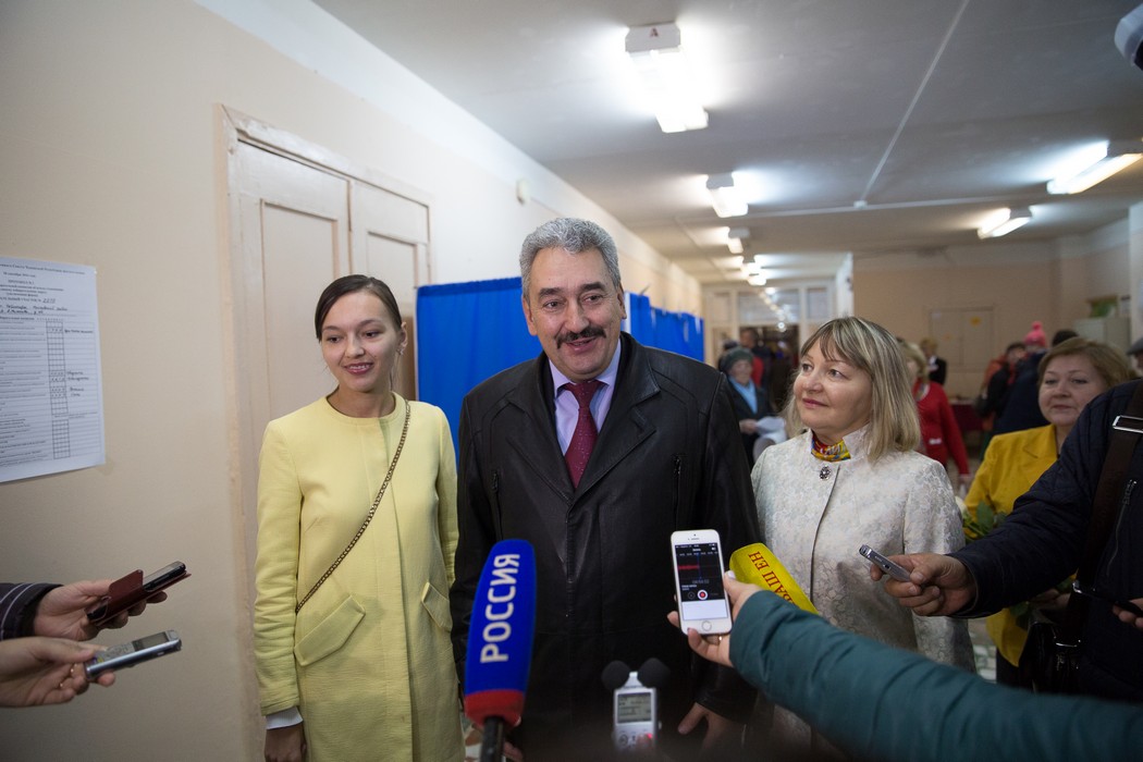 Глава Чебоксар Леонид Черкесов также пришел на избирательный участок с семьей – с супругой и дочерью. Прибыл «с хорошим, праздничным настроением». Голосовал, как рассказал журналистам, «за стабильность, за последовательное развитие Чувашской Республики, города Чебоксары».