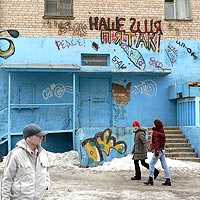 У нас несомненно тоже есть причины вандализма, о котором писал в гневе автор статьи. Во-первых, посмотрите на обличительные фотоиллюстрации. Наша повседневная жизненная среда до того сама варварская по отношению к человеку, что неизвестные художники лишь улучшили своими графитти эти унылые стены и заборы.