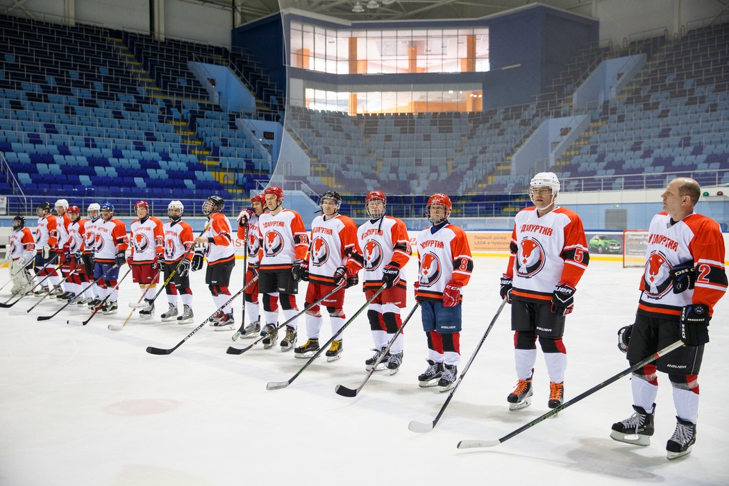 В рамках визита гости из Ижевска побывали на ряде чебоксарских предприятий и померились силами в хоккейном поединке на ледовой площадке дворца «Чебоксары Арена». Перед матчем эксперты предрекали сборной Чувашии поражение с крупным счетом – мол, в удмуртской команде есть бывшие спортсмены, которые просто раскатают соперников по льду. Однако опасения не подтвердились, игра проходила в равной борьбе. Первую шайбу забили гости – отличился помощник одного из депутатов Госсовета Удмуртии Дмитрий Черкасов. За честь республики постоял и.о. главы администрации – начальник отдела градостроительной деятельности и архитектуры Чебоксарского района Владимир Димитриев. На 12-й минуте второго тайма он послал точный удар в ворота соперника. В итоге, как говорится, победила дружба – к концу игры счет остался ничейным, 1:1.