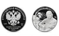 Памятная серебряная монета номиналом 25 рублей выходит к 80-летию со дня рождения поэта, актера, автора и исполнителя песен. На оборотной стороне монеты на фоне силуэтов коней изображен Владимир Высоцкий с гитарой, слева от него — меч, справа — годы жизни: 1938–1980. Вверху по окружности — надпись «ВЛАДИМИР ВЫСОЦКИЙ».