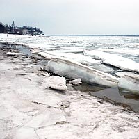 Ледяной покров водоемов все тоньше. Особенно там, где быстрое течение, на глубоких и открытых для ветра участках, у болотистых берегов; в местах выхода подводных ключей, под мостами, в узких протоках, а также вблизи сброса в водоемы теплых и горячих промышленных вод. А на Волге в нижнем бьефе плотины даже в сильные морозы кратковременные пропуски воды из водохранилища образовывали во льду опасные промоины.