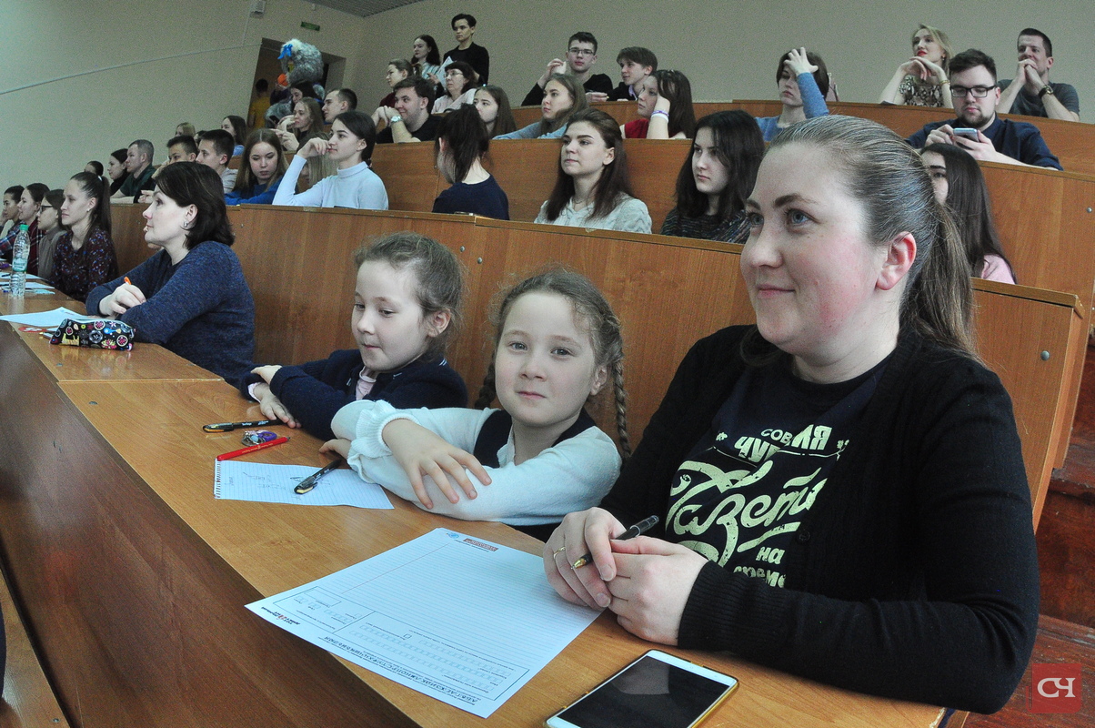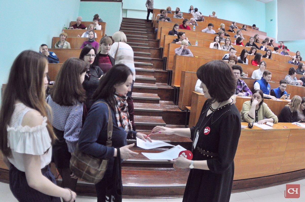 Бросалось в глаза, что среди желающих проверить себя на знание русского языка было много немолодых мужчин и женщин. Для них даже приготовили отдельную небольшую аудиторию, где люди «элегантного возраста», испытывающие проблемы со слухом и зрением, могли спокойно написать работу. Большая часть из них участники социального проекта ЧГУ, курсов «Русский по пятницам». Так, Надежда Кузьмина давно уже на пенсии, но каждую пятницу приезжает в университет, чтобы позаниматься языком. Она не филолог, последние десять лет перед пенсией работала санитаркой в чебоксарском роддоме, просто любит русский язык, пишет стихи и старается поделиться своим увлечением с молодыми. Вот уговорила поучаствовать в диктанте дочку знакомых Анечку, ученицу 9-го класса.
