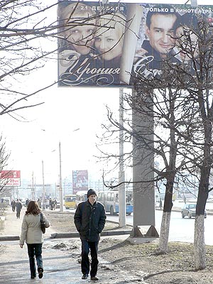 Апрель на подходе. Но все равно некоторым горожанам вспомнить о зиме лишний раз приятно. Хорошее время года — белое, пушистое и с волшебными праздниками. Декабрь прошлого года не хочет отпускать и этот рекламный щит, до сих приглашающий нас в кино. Хотя репертуар в кинотеатрах, конечно же, уже не раз менялся…