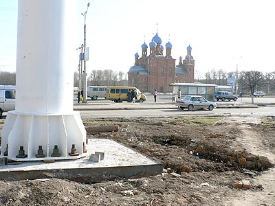 По проспекту Тракторостроителей установили высокий длинный столб, похожий на античную колонну. Говорят, на нем установят суперсовременную рекламу. Это хорошо. Только вот сквер лишился одной из своих дорожек.
