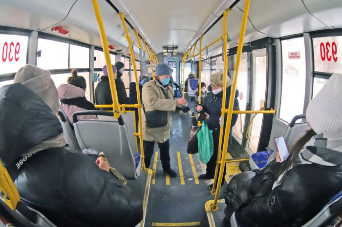 Антиковидные меры важно соблюдать и в транспорте. И дело не только в ношении масок и дезинфекции. Чтобы не создавалось большого скопления пассажиров, автобусы и троллейбусы должны ходить вовремя, по графику. Фото Олега Мальцева