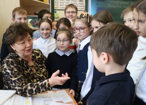 Преемственность поколений — своего рода уже традиция. Тут до сих пор работают те, кто начинал свой учительский труд в старом здании. 48 лет из 51 года трудовой деятельности посвятила второй школе учитель начальных классов Римма Ксенофонтова, к которой мы на минуточку заглянули на урок во время экскурсии по школе.