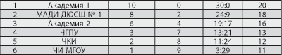 Примечание: вторая команда в таблице представляет Новочебоксарск, остальные – Чебоксары.