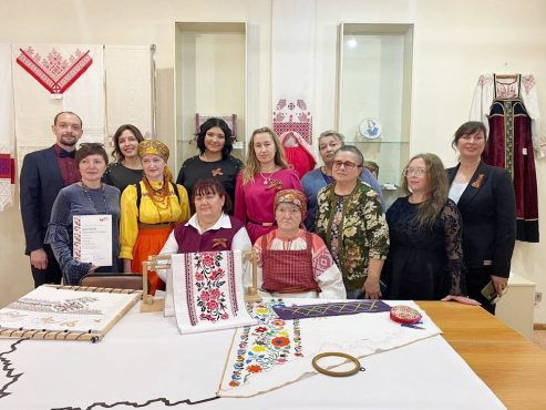 В узорах немецкой вышивки можно разглядеть элементы растительного орнамента, изображения птиц, солнца и ангелов. А русская вышивка узнаваема по сказочной Паве с пышным хвостом, символу семейного счастья и любви, и вышитым коням — символам плодородия. Есть тут и традиционная украинская вышиванка с красными цветами. Но самая яркая и жизнерадостная частица карты, бесспорно, — с татарским узором. В нем вышивальщица «спрятала» пожелание благополучия, здоровья и процветания. Зеленый цвет — основной цвет в исламе. Желтый, синий, красный, розовый — радость и благодарность, наполняющая жизнь человека, несмотря на любые обстоятельства.