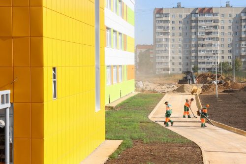 По информации администрации города Чебоксары, сейчас объем выполненных работ на объекте составляет более 70%. Строительство ведется во всех четырех блоках: в первом и третьем завершена внутренняя отделка учебных помещений, во втором и четвертом продолжается. Активно занимаются здесь и благоустройством — озеленением, прокладкой проездов и тротуаров, а также устройством вентилируемого фасада. На стройплощадке работают около ста человек, техника.