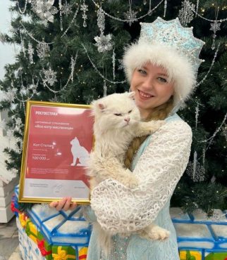 Кроме знаменитых новогодних персонажей застрахован и Степан Тимофеевич — белоснежный кот, любимец Снегурочки, живущий в ее сказочной резиденции в Костроме. Полис «Зверье мое» для кота Степана и сертификаты страхования от несчастного случая сказочным героям вручила директор Ивановского и Костромского филиалов «Росгосстраха» Юлия Соколова.