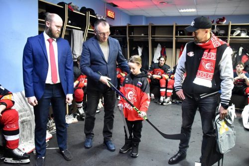 …Восьмилетнему Михаилу Владимирову начало 2024 года запомнится на всю жизнь. Мальчик очень любит хоккей, новая клюшка — его давняя мечта. И она была исполнена министром спорта Чувашии Василием Петровым в рамках всероссийской акции «Елка желаний». Кроме того, Миша успел познакомиться с хоккеистами новочебоксарского «Сокола» и вместе с министром поддержал нашу дружину во встрече против «Тамбова» в рамках первенства НМХЛ.