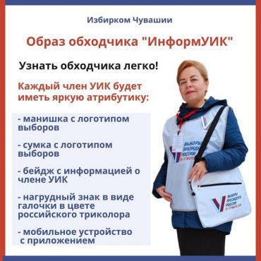 Как сообщают в Избиркоме Чувашии, в информационно-разъяснительной работе, которая продлится с 17 февраля по 7 марта, примут участие более трех тысяч человек. Узнать представителей УИК можно будет по бейджам и фирменным белым сумкам и накидкам.