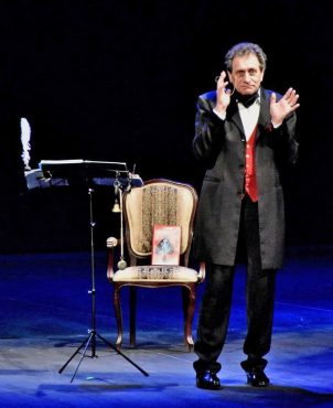 Лирическими островками моноспектакля можно назвать строки о Лизе. Здесь голос актера обретал особую нежность, проникновенность, теплоту. А утонченная фортепианная тема, плавно кружившаяся в ритме вальса, напоминала нам о том, что Пушкин был больше романтиком, нежели реалистом.
