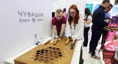 Прокачать можно не только тело, но и мозг. Так, настоящим хитом чувашского стенда стали интеллектуальные настольные игры. Гостям, например, очень нравится необычная игра «Катапульта». Главное в ней — результативно отправить свой волан в окошко с наибольшим количеством баллов. Огромной популярностью пользуется гигантская «Дженга». Дети и взрослые увлеченно пытаются построить самую высокую башню. Привлекают людей всех возрастов и логические игры — нужно видеть, с каким азартом в них играют! А за одной из таких «настолок» на стенде Чувашии можно было встретить певца Дениса Клявера с сыном Даниэлем — их так захватила игра, что они, по словам организаторов, задержались на экспозиции республики дольше, чем планировали.