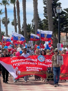 В этом году «Бессмертный полк» прошагал по Альмерии 5 мая. Вместе с портретами героев участники акции гордо несли российские и советские флаги. Фото Ларисы Манейкиной