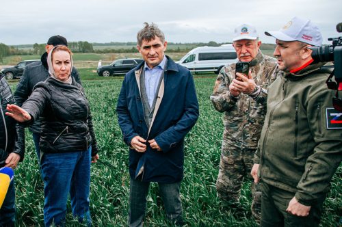 Глава республики также ознакомился с состоянием озимых зерновых культур. Посеяны они были в третьей декаде августа прошлого года. «Сеяли элитными семенами, обязательно протравливали их от болезней, от вредителей. Также добавили удобрения и полезные микроорганизмы. Сейчас уже успели подкормить поля аммиачной селитрой — 100 килограммов на гектар. От мороза кончики немного повредились, но у пшеницы уже появился колос», — отметила Алина Разумова.