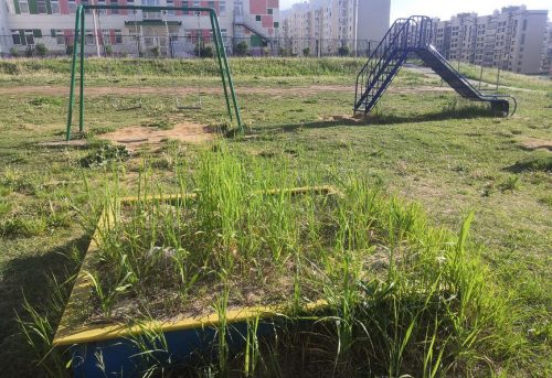 Хотим и мы внести свою лепту в благоустройство любимого города. Правда, речь пойдет не о крупном общественном пространстве, а о скромном дворе в микрорайоне «Садовый». Здесь по проспекту Г. Айги, 13, корп. 1 нами была замечена песочница, забытая местной жилищной компанией настолько, что стала зарастать густой высокой травой. Между тем, лето уже вступило в свои права, и время завоза свежего и чистого песка давно пришло.