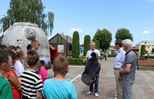 В Шоршелах Николай и Марина Бударины по традиции зашли в часовню, возложили цветы на могилу космонавта-3 . А поскольку визит был неофициальный, дружеский, никаких встреч заранее не планировалось. Но как раз в этот момент на экскурсию в музей приехали школьники из Цивильского округа. И, конечно, ребята не могли упустить возможность пообщаться с космонавтом. Николай Бударин рассказал им о полетах в космос, о том, что из себя представляет ложемент, и сфотографировался на память вместе с детьми.