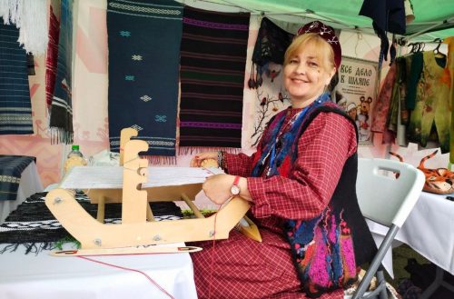 А вот Светлана Прокопьева из Республики Татарстан с Чебоксарами уже знакома — пять лет назад она участвовала в «Руси мастеровой» в номинации «Текстильная кукла». В этом году она представляет ткачество на ручном станке. «Я жила в деревне до семи лет, а после ездила туда на каникулы, — рассказала Светлана. — И когда мы туда приезжали, я все время забирала то, что висело на стенах — вышитые изделия, салфетки. Забирала, несмотря на все уговоры родителей. Так что любовь к народному искусству у меня в крови с детства. А когда сама стала взрослой, и уже дети мои стали взрослыми, я познакомилась с народной куклой-мотанкой и все, с головой ушла в народное творчество». Светлана уволилась из института, где работала психологом, но психологию не бросила, а просто объединила два любимых дела: теперь она проводит мастер-классы по гармонизации психофизического состояния через народное творчество.