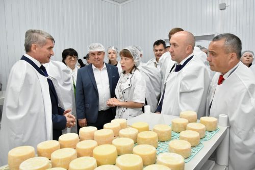 Разделить праздник с сельчанами приехали и столичные гости. Глава Чувашии Олег Николаев принял участие в открытии современной сыроварни, что принадлежит местной предпринимательнице, выпускнице «Школы фермера» Татьяне Юркиной из села Чутеево. Производством кисломолочных продуктов она занимается давно, а в 2021 году решила расширить свой бизнес и получила 8 млн рублей на поддержку из республиканского бюджета. Добавив своих 3,5 млн рублей, Татьяна Николаевна основательно модернизировала предприятие и установила новое, высокоэффективное оборудование. Теперь у нее широкий ассортимент сыров: рассольный сулугуни, мягкий моцарелла, фигурный чечил. Зреют на полках ламбер и качотта.
