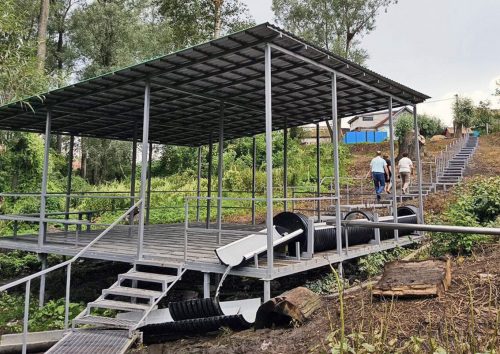 Работы начались еще в марте. За это время территорию вблизи родника очистили от поросли и старых сгнивших деревьев, склон оборудовали металлической лестницей длиной в 175 метров с перилами, обустроили навес, скамейки, а для источника установили большую железную емкость. Вода туда стекает сразу из трех родников, а затем впадает в местную речку Соломинку. На благоустройство было выделено почти 2,5 млн рублей: 1,9 млн составили средства республиканского бюджета, 246 тыс. — местного, еще около 247 тыс. вложили сельчане.