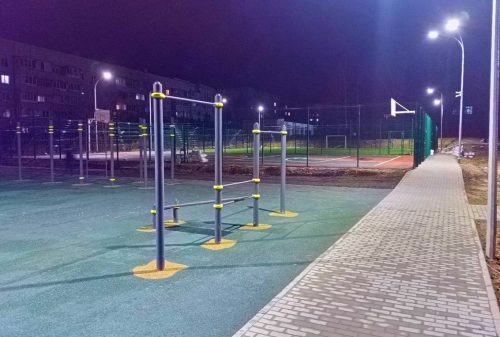 Прилегающее к учебному заведению пространство преобразилось. Здесь появилось профессиональное футбольное поле, отвечающее современным стандартам. Открыты новые площадки с тренажерами, которые помогут детям поддерживать хорошую физическую форму. Кроме того, установлено дополнительное освещение. Теперь различные мероприятия, в том числе и спортивные, можно проводить и вечером в комфортных условиях.