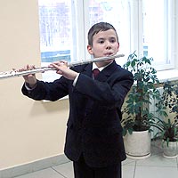…И вот торжественно разрезана красная лента. Галерея пригласила к себе первых посетителей. Особую, возвышенную, атмосферу создали флейта и скрипка. На музыкальных инструментах виртуозно играли школьники. Недаром при гимназии существует кружок «Волшебные струны» — классические мелодии тронули душу. (К слову, один из юных музыкантов — флейтист Федор Волков. Пятиклассник на днях вернулся из Парижа, где демонстрировал свое мастерство.) А потом экскурсовод повела ребят в первое путешествие по миру живописи.