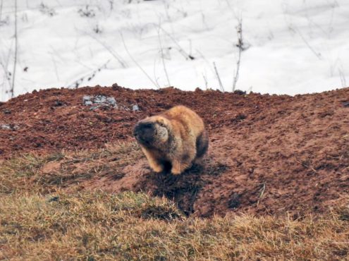Дата пробуждения зависит от сугробов. Чем меньше слой снега, тем глубже промерзает почва, и тем позднее сурки выходят из спячки. Эта зима была малоснежной. В декабре толщина покрова на Батыревском участке составляла 5-6 см, в январе снег практически отсутствовал, и лишь в феврале склон, на котором расположены норы сурков, припорошило. Почва промерзла на 20-25 см. Свое слово сказала и прошлая, сухая и длинная, осень. В таких условиях в земле образуются термотрещины, через них в нору проникает влага, а весной талая вода. В марте, когда чередуются заморозки и оттепели, щели становятся еще больше. Конечно же, это не очень нравится суркам.
