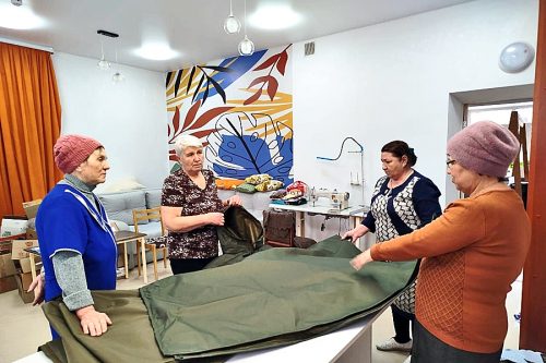 Посетители центра активного долголетия «Мой социальный центр «Ҫавал» в селе Чурачики Цивильского муниципального округа плетут маскировочные сети, вяжут носки, делают окопные свечи для участников специальной военной операции. Теперь они решили освоить выпуск нового вида продукции — антидроновые плащи.