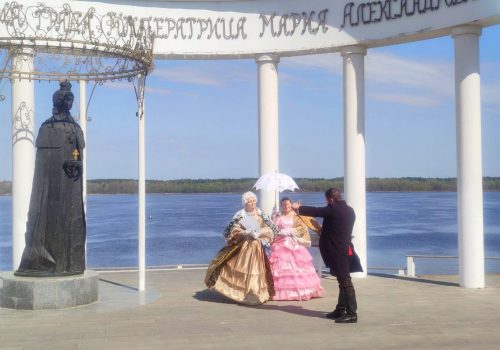 Приятно пройтись над Волгой изящными узкими тротуарами, останавливаясь на смотровых площадках со скамеечками и любуясь красивыми волжскими пейзажами! Невольно подслушать двух кумушек из прошлого, мило беседующих на балконе старинного здания. И поклониться самой императрице Марии Александровне, прогуливающейся с зонтиком под белоснежной колоннадой. Это она дала свое высочайшее позволение зваться городу Сундырь в ее честь, и стал он Мариинским Посадом. Гостей здесь встретят театрализованными ретропредставлениями. Национального колорита добавят творческие народные коллективы — нас, например, приветствовал песнями и плясками ансамбль «Кукашни» из Сутчевского Дома культуры. Для туристов, путешествующих вверх по реке, двери в Чувашию открываются именно здесь. Каждый из них рассчитывает на море впечатлений и эмоций. А уж об этом позаботятся!