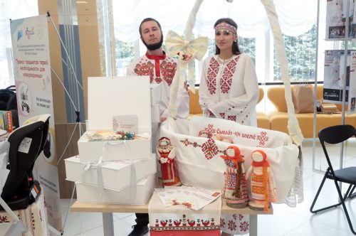 В Чувашии каждый новорожденный получает подарочный набор. Среди детских принадлежностей есть полотенце с чувашской вышивкой и трогательной надписью о здоровье и красоте души.