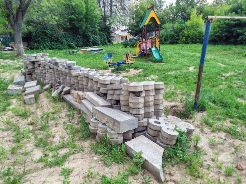 А раскопки были масштабные, коснулись участков, где располагаются гостевые парковки и пешеходная дорожка. Энергетики оставили после себя горы сломанных бордюров и плиток. Эти железобетонные отходы соседствуют с детскими и спортивными площадками и представляют опасность для местных ребятишек. Поскольку до восстановления разрушенного благоустройства дело так и не дошло, в дождь машины вынуждены парковаться прямо на лужах, а пешеходы — скользить по глине.