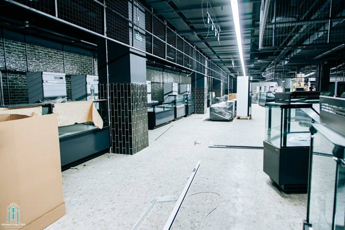 Гастрономические ряды с чувашской продукцией расположатся на цокольном этаже здания — на площади 4,2 тыс. кв. м. Проектом предусмотрено 76 торговых мест, большая зона фудкорта, одновременно здесь смогут находиться до 1050 человек. Сейчас в агромаркете идут последние приготовления: завозится мебель, монтируется оборудование, завершаются ремонт и отделка. Интерьер зала, к слову, оригинальный. Стены и колонны украсят росписью в народном стиле, а в помещении установят статуи, олицетворяющие людей труда, и интересные фотозоны — сейчас местные художники и дизайнеры как раз вносят последние штрихи в создание неповторимой атмосферы. Добавит колорита и оформление витрин: деревянные подставки, приглушенные тона, национальные орнаменты — каждая деталь сделана с любовью и душой.