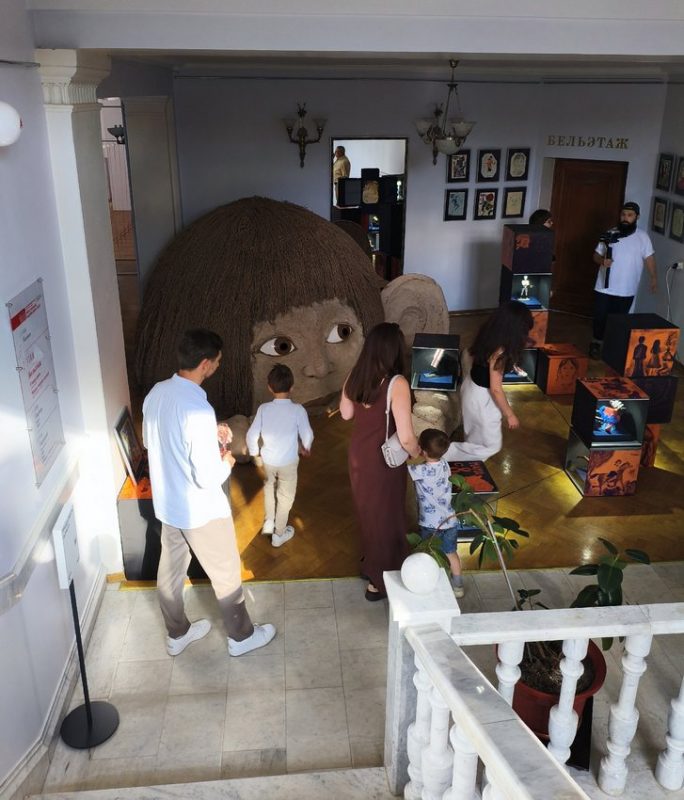 Пространство старейшего в Чувашии театра захвачено биеннале полностью, от гардероба до самого чердака, и стало многоярусным лабиринтом, в котором можно бесконечно блуждать, открывая для себя все новое и удивительное. Отдаваясь сложным чувствам, проживая чужую боль или просто любуясь красотой выставленных предметов, слушая, прикасаясь, забираясь внутрь, меняя точку зрения.
