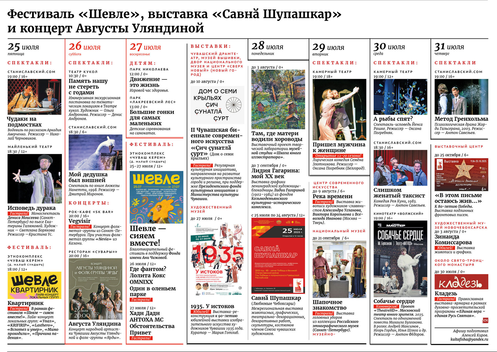 Культурная афиша с 25 по 31 июля Автор: Советская Чувашия Версия для печати chat_bubble_outlineКомментариев нет