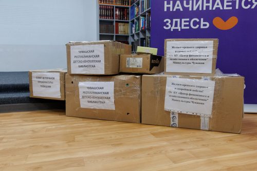 На картонных коробках — пожелания крепкого здоровья и скорейшей победы. Внутри — необходимые принадлежности. Все, собранное с любовью заботливыми руками волонтеров культуры, отправится в зону специальной военной операции. Это уже четвертая гуманитарная акция, организованная в Добро.Центре, открывшемся в Чувашской республиканской детско-юношеской библиотеке десять месяцев назад.