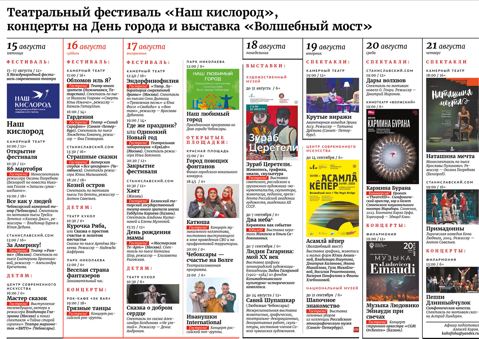 Культурная афиша с 15 по 21 августа Автор: Советская Чувашия Версия для печати chat_bubble_outlineКомментариев нет