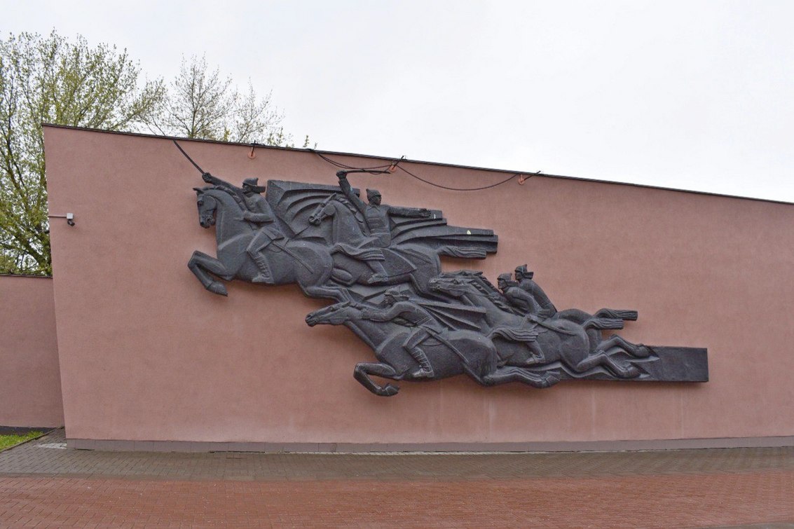 К южному торцевому фасаду примыкает мемориальная стена-постамент с барельефами. На них изображены Дмитрий Фурманов, Михаил Фрунзе, Михаил Тухачевский, Валериан Куйбышев и Иван Кутяков. Скульптором выступил Эдуард Агаян.