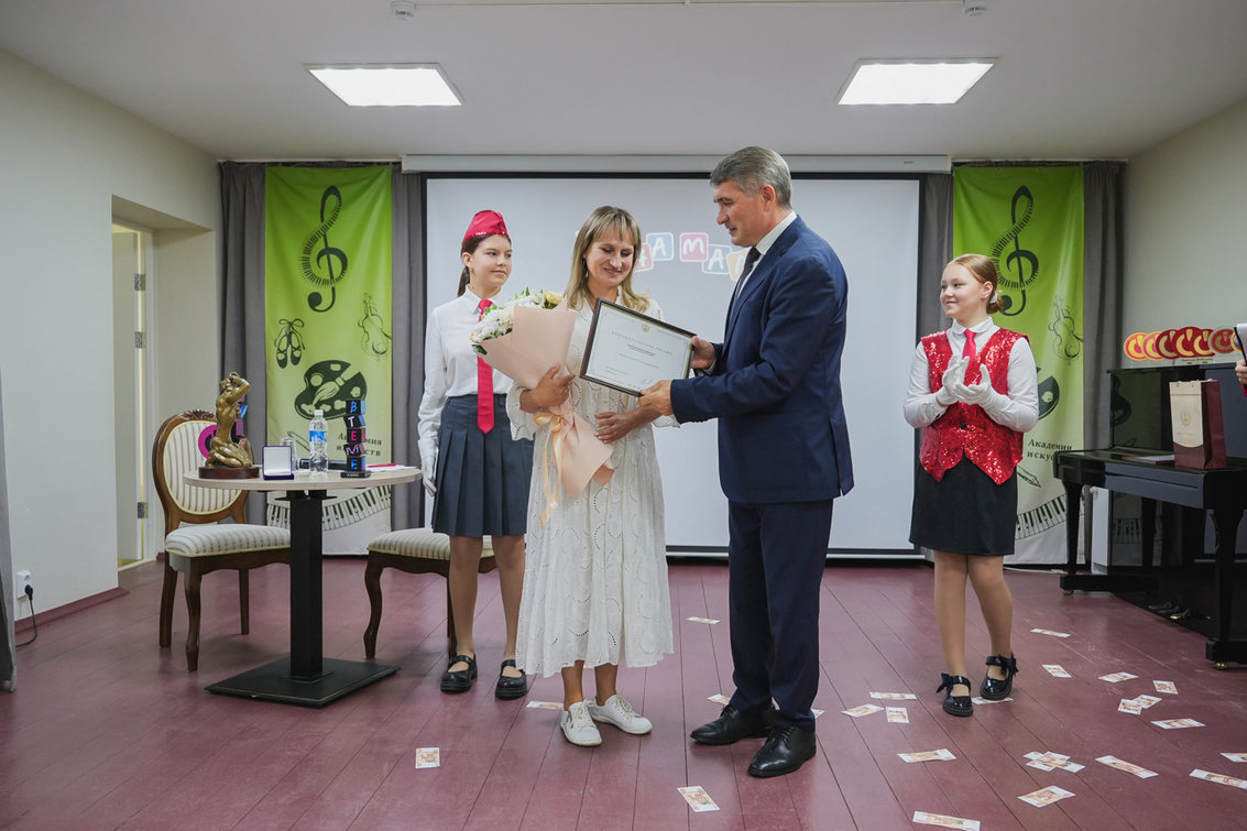 Глава республики вручил благодарственные письма руководителю медиацентра «Куча мала!» Марии Шоклевой, а также лучшим ученикам детского центра —Марии Борисовой, Якову Григорьеву, Леону Кристя, Татьяне Курепиной, Борису Курьянову, Софии Фоминой.