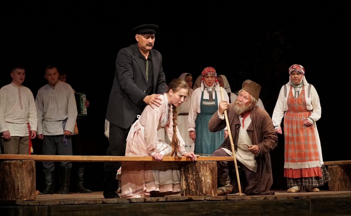Одним словом, в пьесе встречается целая россыпь песен различных жанров. Умело вплетая их в повествование, драматург, также выполняющий функции композитора и фольклориста, создает колоритный музыкальный антураж, на фоне которого сюжет, персонажи и их взаимоотношения раскрываются еще более полно, рельефно и выразительно, а конфликт приобретает особую пронзительность, надрывность и остроту. В том, что в нынешней постановке сохранена народно-песенная основа произведения — главная мудрость театра и глубокое понимание национального своеобразия павловского шедевра.