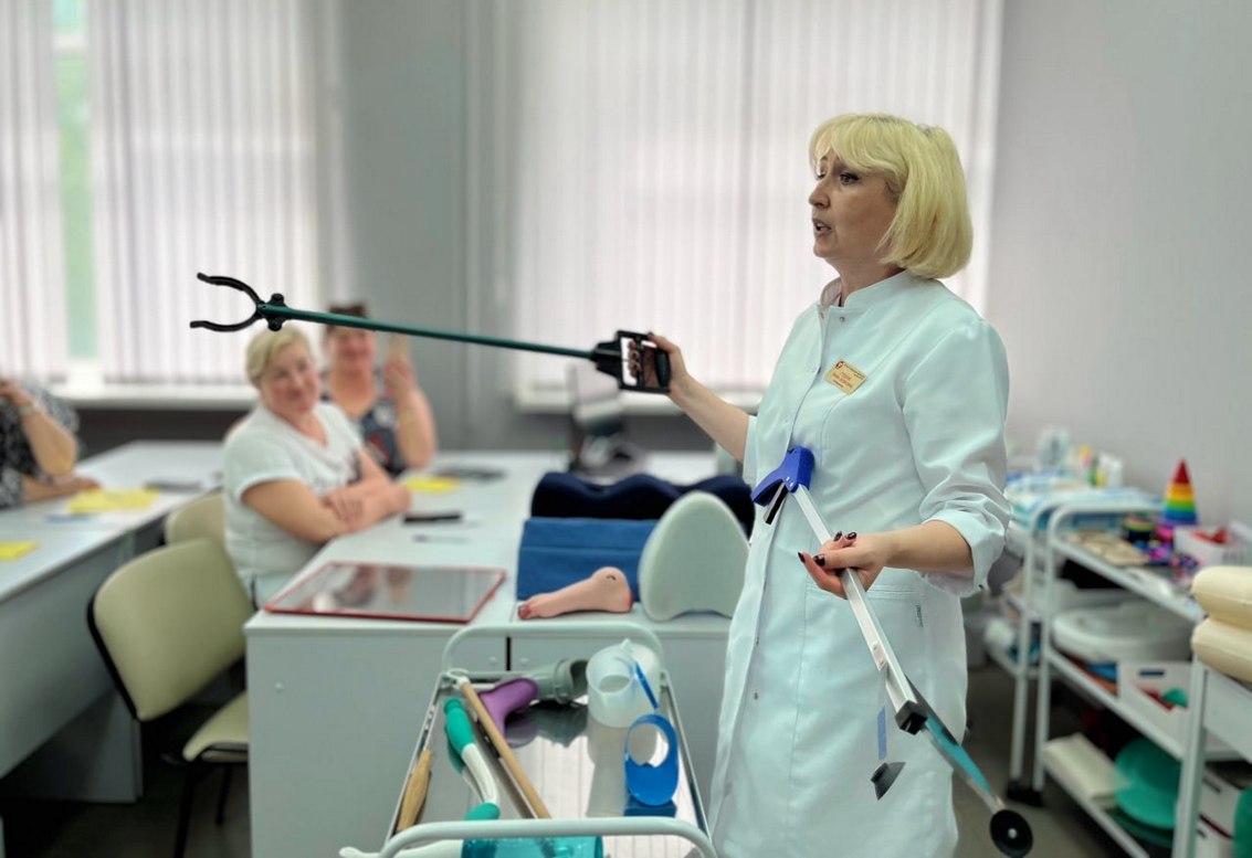 А еще Лилия Стоцкая готовит пополнение для Российских студенческих отрядов — медсестер и медбратьев по уходу за больными. Тема заботы и попечения ярко обозначена в ее жизни и благодаря совместному проекту республиканского Минздрава и Союза женщин Чувашии «Прояви заботу — научи уходу!». Она его активный участник. На курсы к Лилии Борисовне приходят родственники пожилых людей, жены бойцов СВО, мамы детей с ограниченными возможностями здоровья — все те, кто в силу обстоятельств должен помогать своим близким. Многие поначалу бывают растеряны: что делать, как организовать быт, научиться ухаживать за заболевшим, создать ему оптимальные условия, быстрее его восстановить. «Мы превращаем проблемы в задачи. И вместе учимся их решать», — говорит Лилия Стоцкая и показывает несложный, но эффективный инвентарь.
