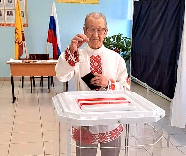 Нередко можно было встретить людей в ярких национальных костюмах, услышать чувашские народные песни. Все подчеркивало важность момента. Одним из тех, кто пришел на избирательный участок в национальном наряде, стал житель села Богатырево Цивильского округа, 95-летний Самуил Дмитриев. Вся жизнь Самуила Дмитриевича тесно связана с шахматами: он многократный победитель республиканских турниров, призер всероссийских состязаний, организатор турниров. Дмитриев — один из инициаторов открытия шахматного клуба в Цивильске.