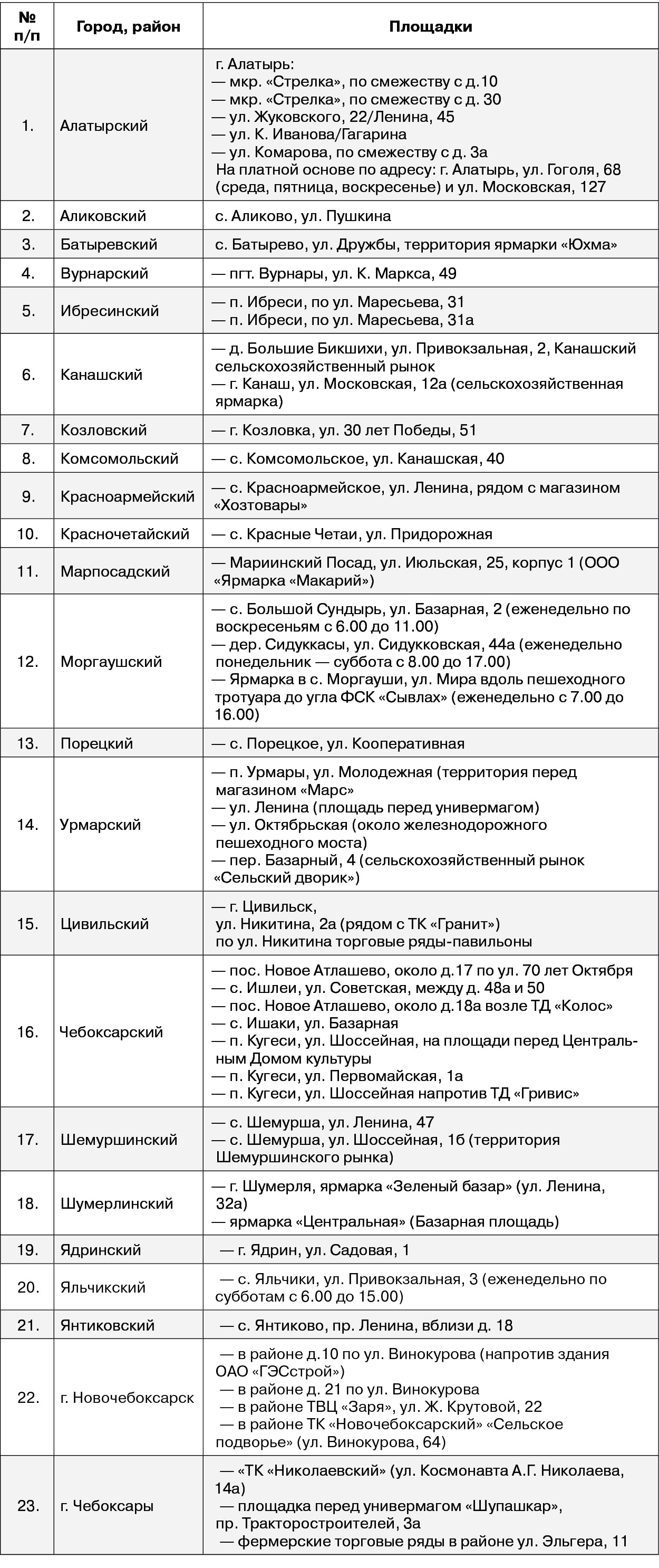 Торговые площадки действовали во всех городах и муниципальных округах. Среди крупных участников — предприятия Чувашпотребсоюза, АО «Чувашхлебопродукт», ИП Потапов Н.А., ООО «Вурнары Завод Сом», «Рыба+», «Приволжские колбасы». Только в Чебоксарах в ярмарке приняли участие более 112 товаропроизводителей, что превышает прошлогодний показатель. Оживленная торговля шла и в Алатыре. По данным окружной администрации, цены на товары приятно удивили покупателей. Например, картошку можно было приобрести по 25 рублей за кг, лук — по 35 рублей, морковь — по 30 рублей, свеклу — по 20 рублей.