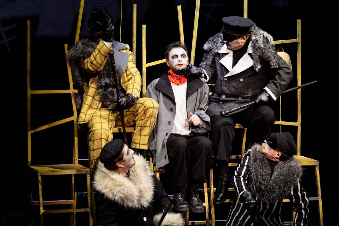 То, что режиссер премьеры Иван Чигасов решил придать драматическому в своей первооснове спектаклю черты пантомимы и пластики, само по себе довольно изобретательно, свежо и фантазийно. И хотя аналогичный ход уже использовался в тюзовских постановках (взять, к примеру, гоголевскую «Шинель» в режиссуре Владимира Беляйкина), для нашей сцены это, скорее, новшество, нежели привычность. Однако уместен ли данный прием, в корне визуальный и уводящий нас от глубин русского психологического театра в сторону фиглярства и гаерства, пусть и весьма занимательного, при создании таких неоднозначных и многослойных образов, как Раскольников и Соня Мармеладова, вопрос спорный.