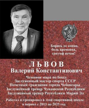 В поселке Новые Лапсары в Чебоксарах на фасаде спортшколы имени олимпийского чемпиона А.И. Тихонова открыта мемориальная доска, посвященная заслуженному мастеру спорта СССР, чемпиону мира и СССР по боксу Валерию Львову. Валерий Константинович работал в учреждении с 2013 года. Сначала трудился заместителем директора по спортивно-массовой работе, позже — инструктором-методистом. Львов активно поддерживал молодых спортсменов, укреплял тренерскую школу. Под руководством именитого земляка росли победители крупных турниров, среди них чемпион мира по кикбоксингу Александр Федоров и десять мастеров спорта России по боксу. Напомним, Валерий Львов скончался 24 мая 2025 года.