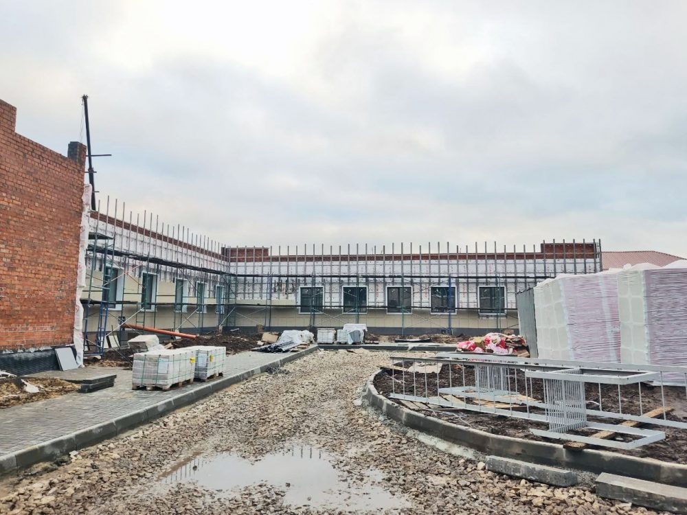 Полностью завершена кирпичная кладка, подходят к финалу кровельные работы, внутренняя отделка помещений, монтаж инженерных систем. Более чем на 50% выполнено благоустройство территории.